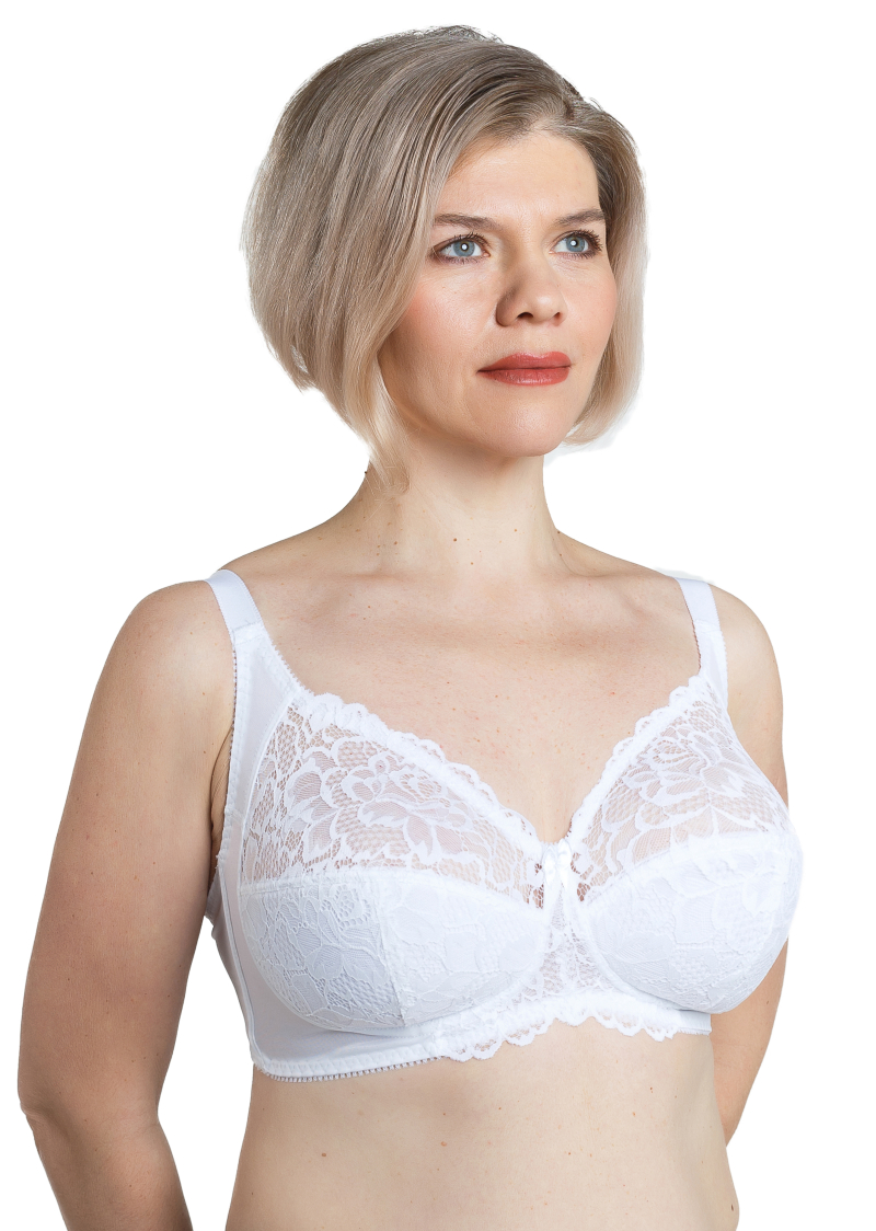 Классический бюстгальтер на каждый день, кружевная чашка, нижняя часть чашки на поролоне, дублированная х/б полотном, без каркасов. Для дополнительного комфорта в носке боковые части пояса усилены стержнями. Эта модель бюстгальтера может быть выполнена с применением эластичного кружева другого артикула для улучшения внешнего вида.
