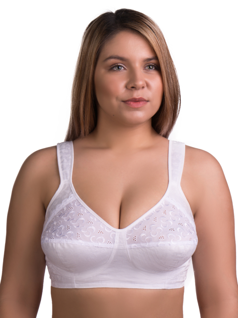 Бюстгальтер для повседневной носки, для женщин обладающих чувствительной кожей и выбирающих только натуральные ткани, мягкая чашка из хлопкового полотна и вышитого полотна, усиленные бретели хорошо держат грудь и снижают нагрузку на плечевой пояс, без каркасов.