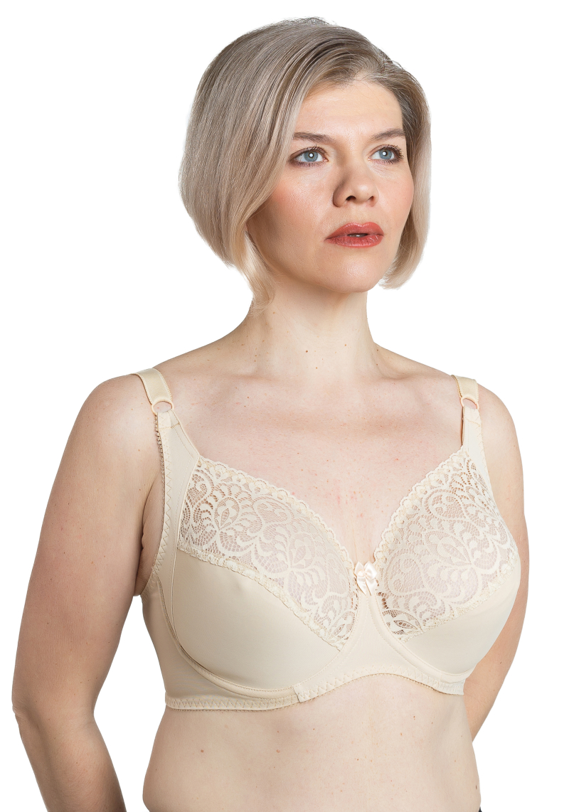 Комфортный бюстгальтер на каждый день, комбинированная мягкая чашка с боковой кокеткой, на хлопковой подкладке, на каркасах.