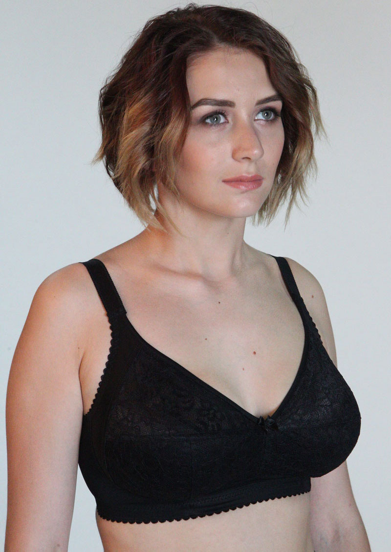Удобный бюстгальтер на каждый день с кружевной мягкой чашкой на хлопковой трикотажной подкладке, без каркасов.