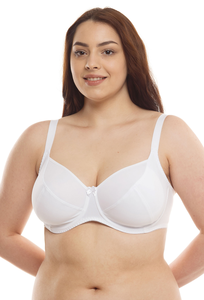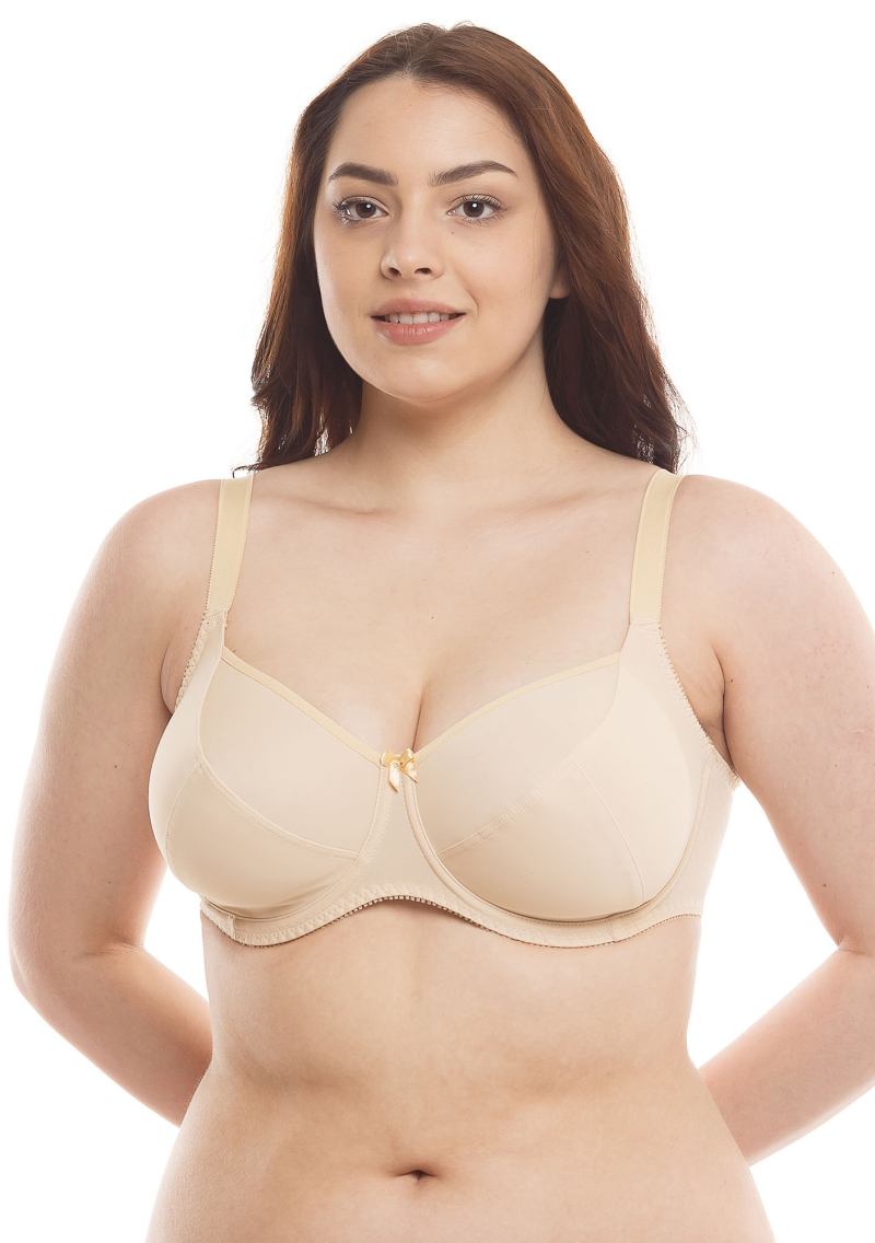 Классический бюстгальтер для повседневной носки, гладкая чашка с подкладкой из х/б трикотажного полотна, на каркасах. Смещенный шов чашки предназначен для того, чтобы не раздражать грудь с повышенной чувствительностью.