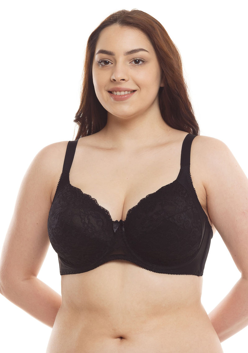 Комфортный бюстгальтер на каждый день, кружевная мягкая чашка с боковой кокеткой на хлопковой трикотажной подкладке, на каркасах. Верхняя часть чашки укреплена подкладкой из эластичной сетки (кроме размеров 75С, 75D, 80B, 80C, 85B).
