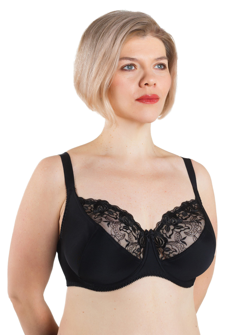 Классический бюстгальтер для повседневной носки, мягкая чашка, верхняя часть чашки - вышитая сетка, чашка на подкладке из х/б трикотажного полотна, на каркасах. Смещенный шов чашки предназначен для того, чтобы не раздражать грудь с повышенной чувствительностью.
