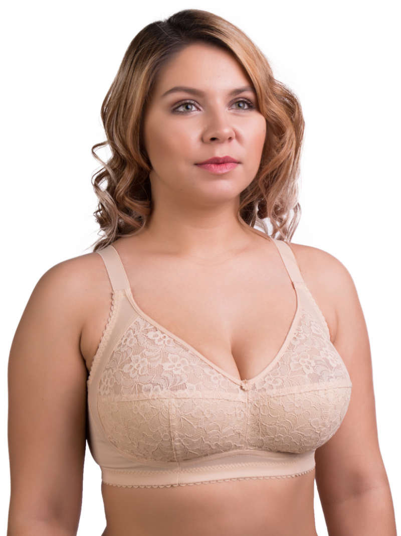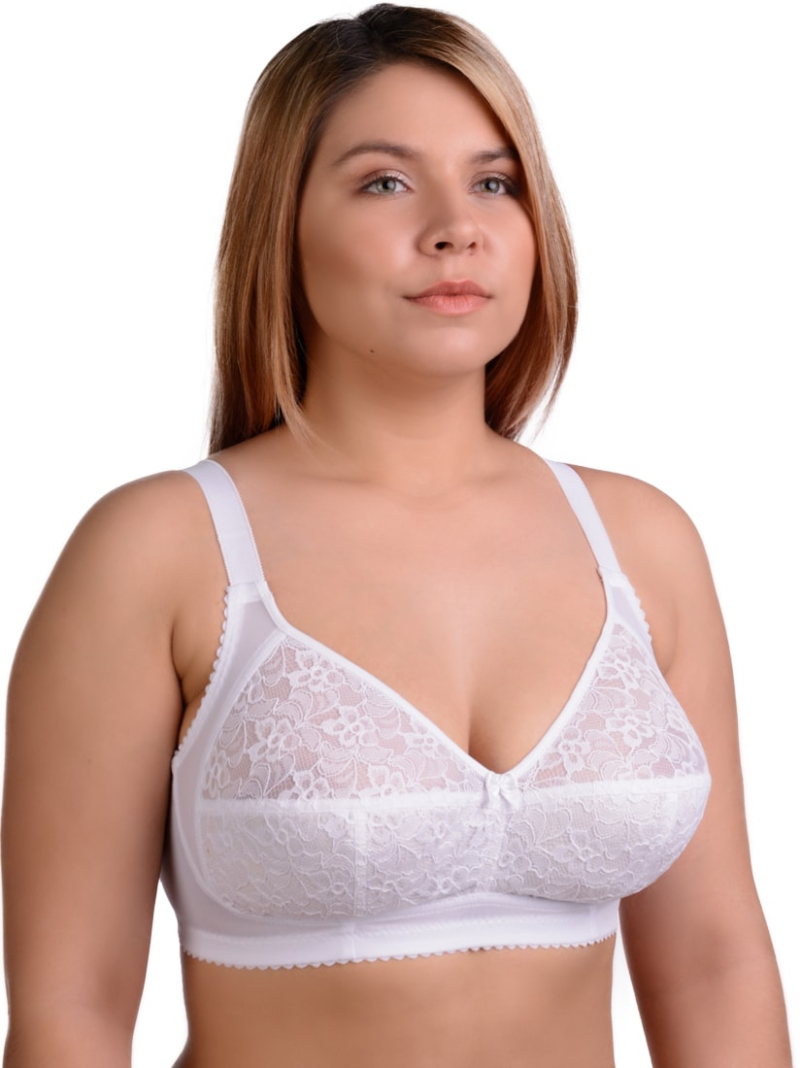 Удобный бюстгальтер на каждый день с кружевной мягкой чашкой на хлопковой трикотажной подкладке, без каркасов.