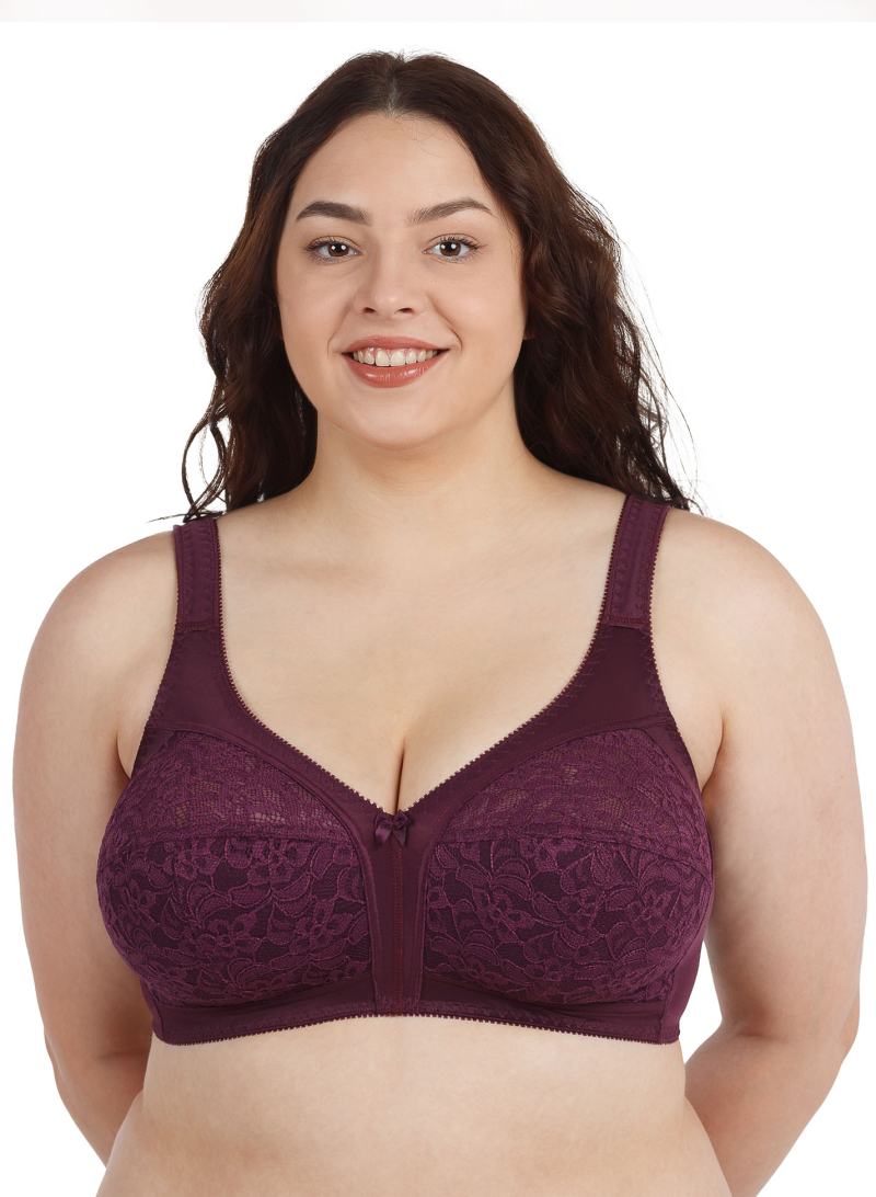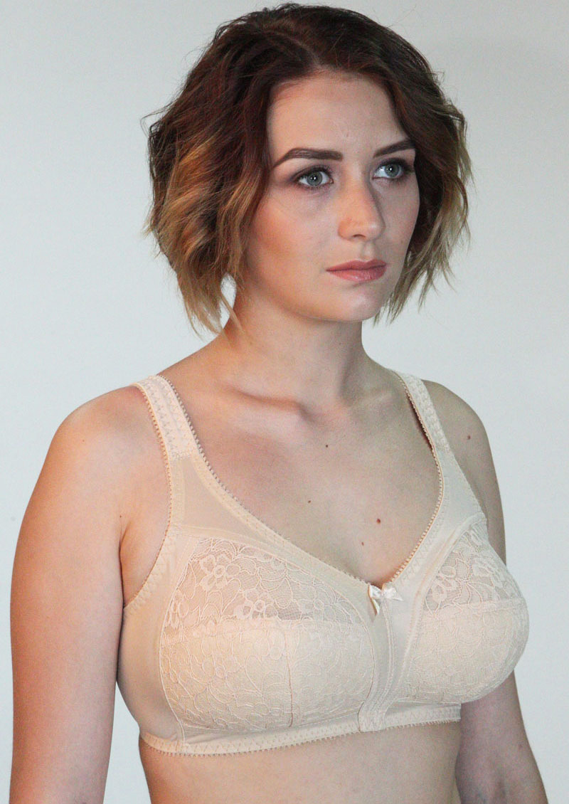 Удобный бюстгальтер на каждый день с кружевной мягкой чашкой на хлопковой подкладке, без каркасов, широкая боковая часть пояса и усиленная бретель хорошо держат грудь и снижают нагрузку на плечевой пояс. Модель выпускается в большом размерном ряду.